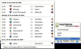 O FootieFox inclui um placar dinâmico na barra de status do Firefox. Você visualiza os últimos resultados dos jogos do seu time do coração sem parar de navegar na internet. Se quiser saber mais detalhes sobre a partida, basta um clique na imagem do escudo.